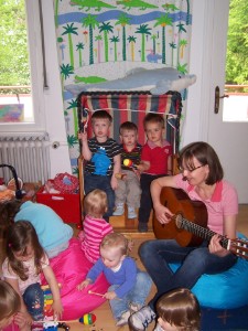Unseren Schwerpunkt legen wir auf die sprachliche und musische Förderung unserer Tageskinder. Die musikalische Früherziehung, geleitet durch Frau Irrgang, hat einen festen Bestandteil im Wochenplan. Darüber hinaus singen wir täglich im Morgenkreis und die Musik begleitet uns auch bei vielen anderen Gelegenheiten. Gerade durch die Musik werden die Kinder in allen wichtigen Bereichen spielerisch gefördert. Durch Tanz und Fingerspiele regen wir nicht nur die motorische Entwicklung an; auch die sozialen und kulturellen Kompetenzen werden dabei gefördert und ebenso die kognitiven Fähigkeiten und die Sprache. Selbst mathematische Grunderfahrungen werden durch Musik und Tanz erworben.
